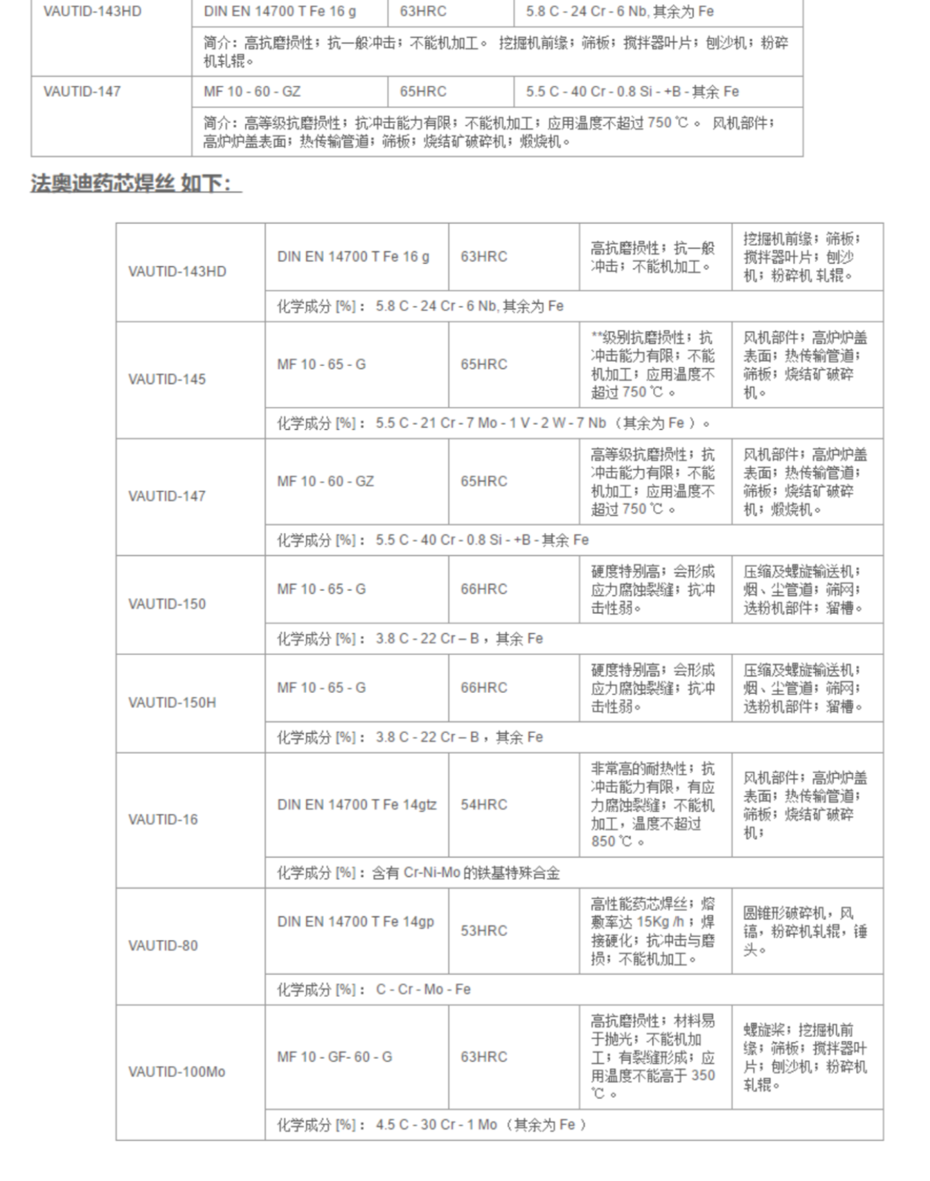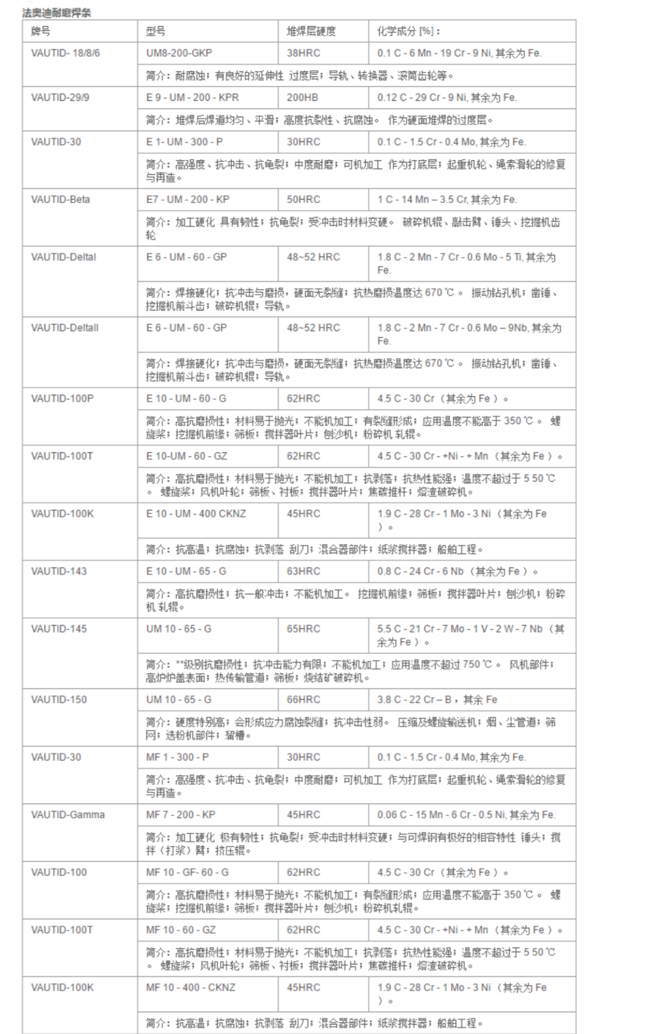 德國(guó)法奧迪VAUTID焊材